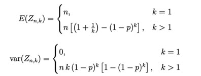 Conclusion 3. The expectation and variance of the variable Zn,k are as follows:
