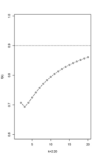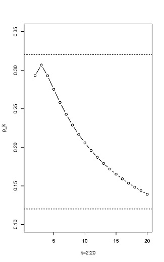 At first glance, k = 40 is a bit large, and it can be verified that 1 – (1/40)1/40 = 0.088, which is much larger than the p = 0.001 given here. However, referring back to Figure 1, this grouping is feasible.