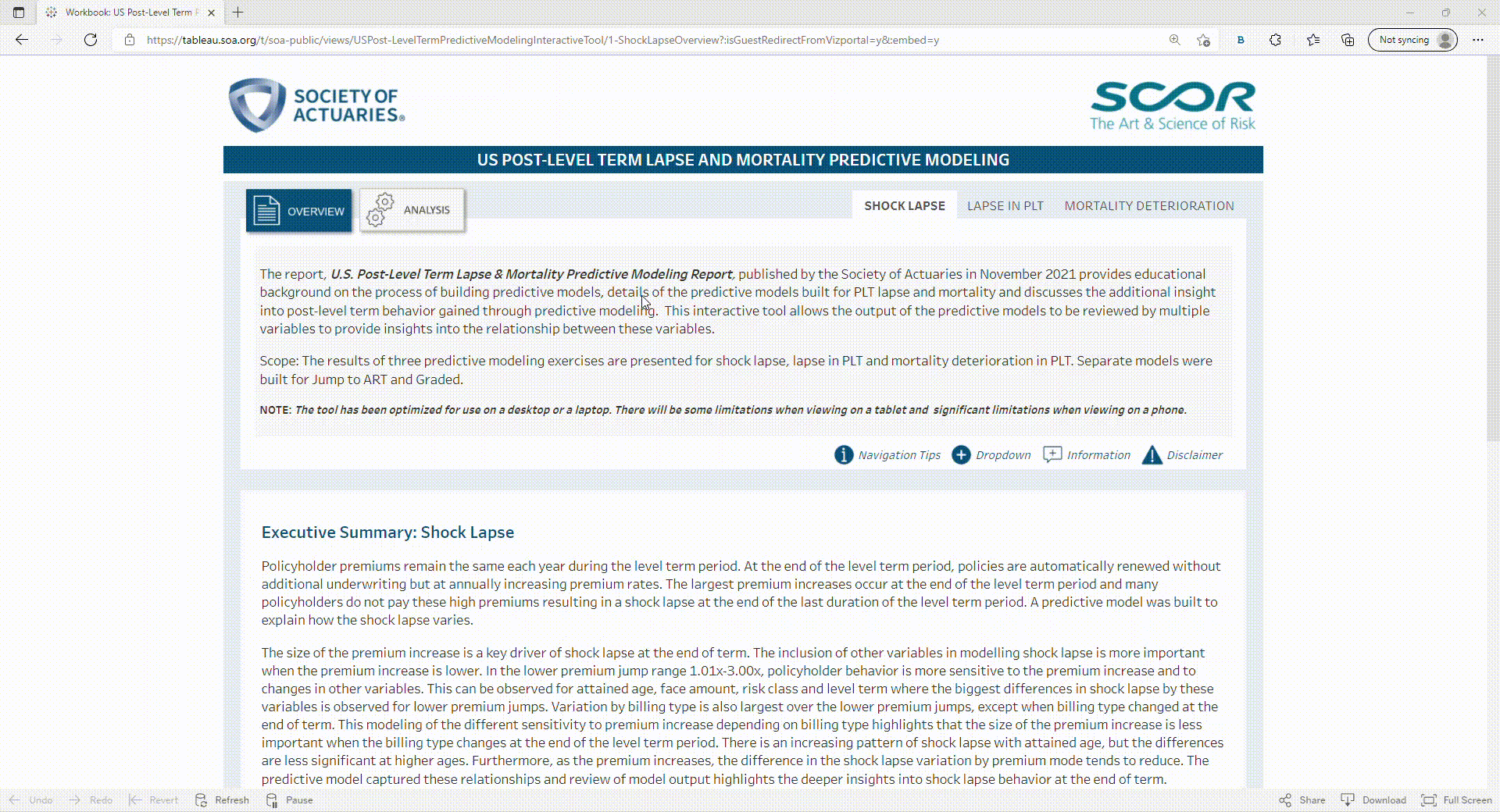Tableau dashboards - Shock Lapse